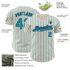 Custom Cream (Navy Teal Pinstripe) Teal-Navy Authentic Baseball Jersey