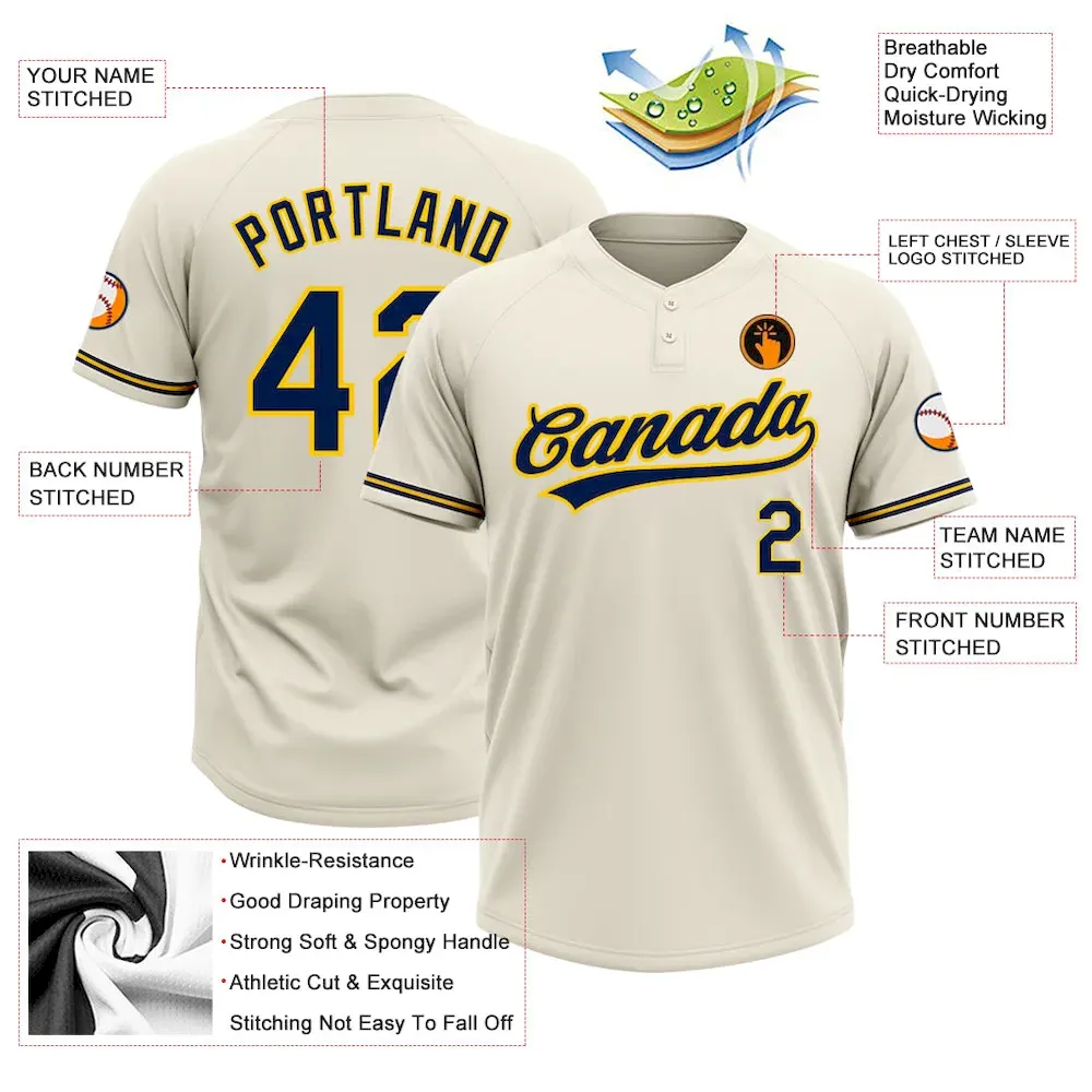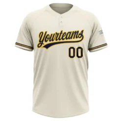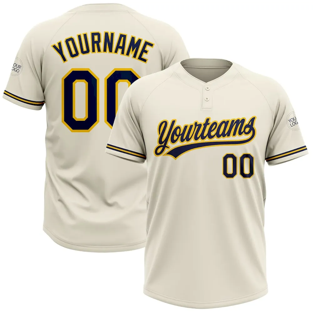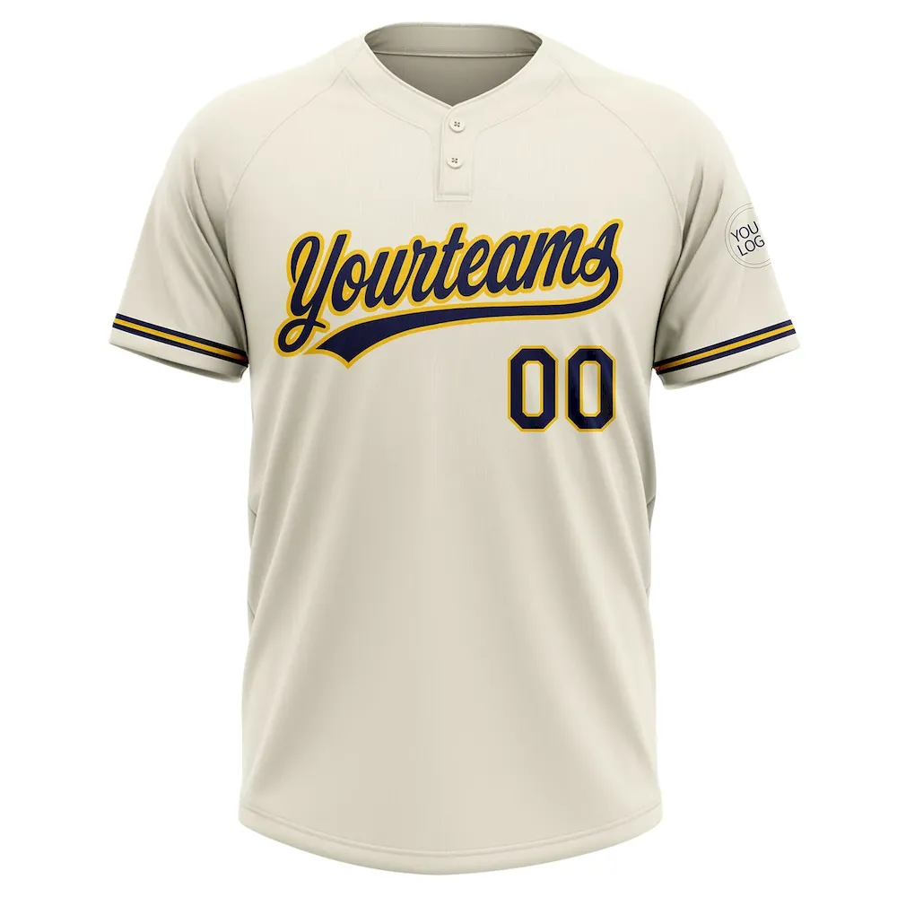 Custom Cream Navy-Yellow Two-Button Unisex Softball Jersey