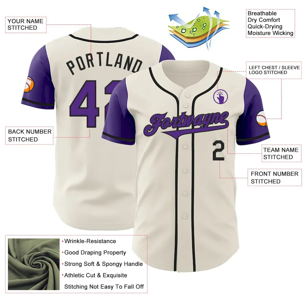 Custom Cream Purple-Black Authentic Two Tone Baseball Jersey