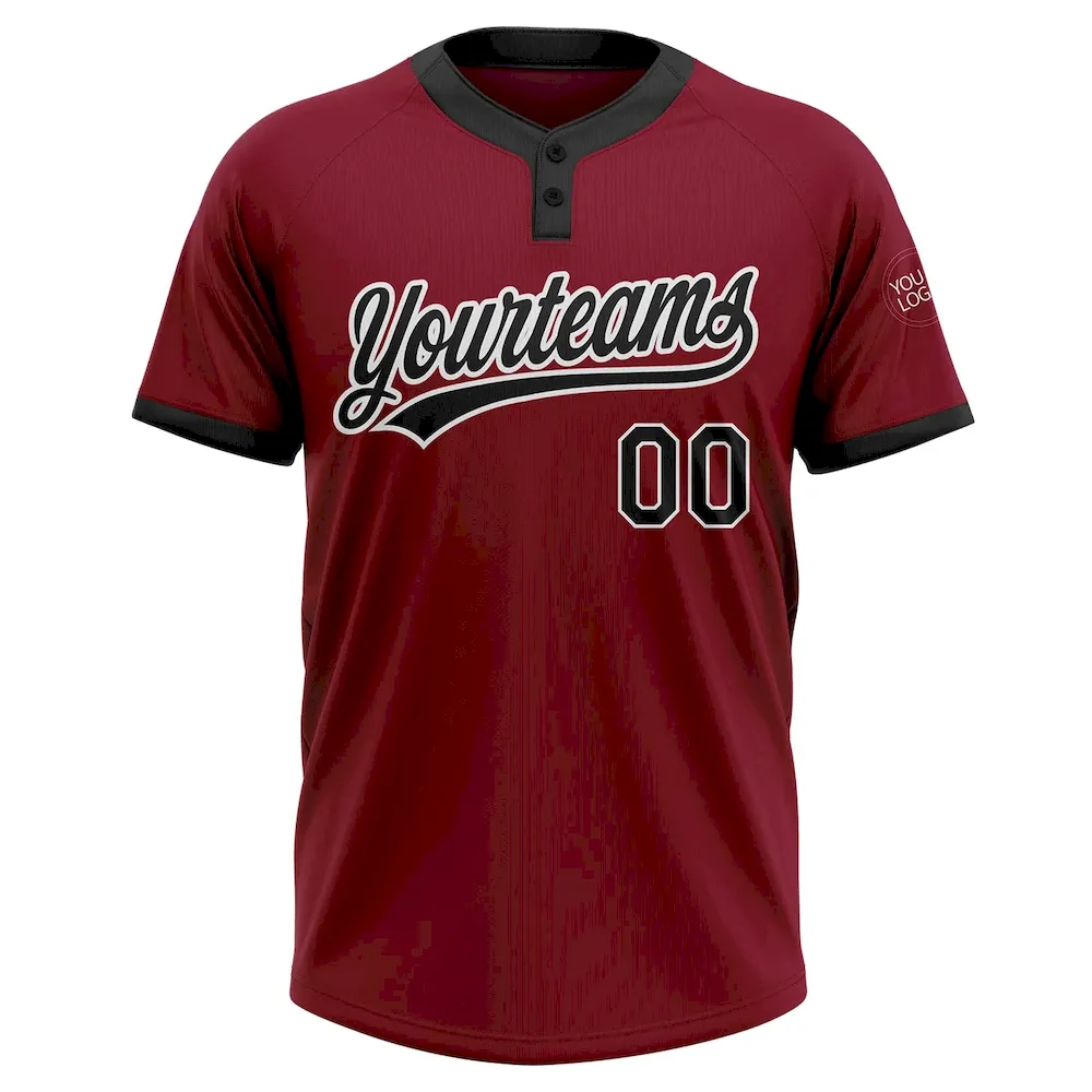 Custom Crimson Black-White Two-Button Unisex Softball Jersey