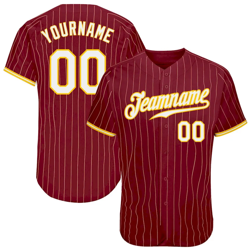 Custom Crimson Cream Pinstripe Gold-White Authentic Baseball Jersey