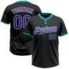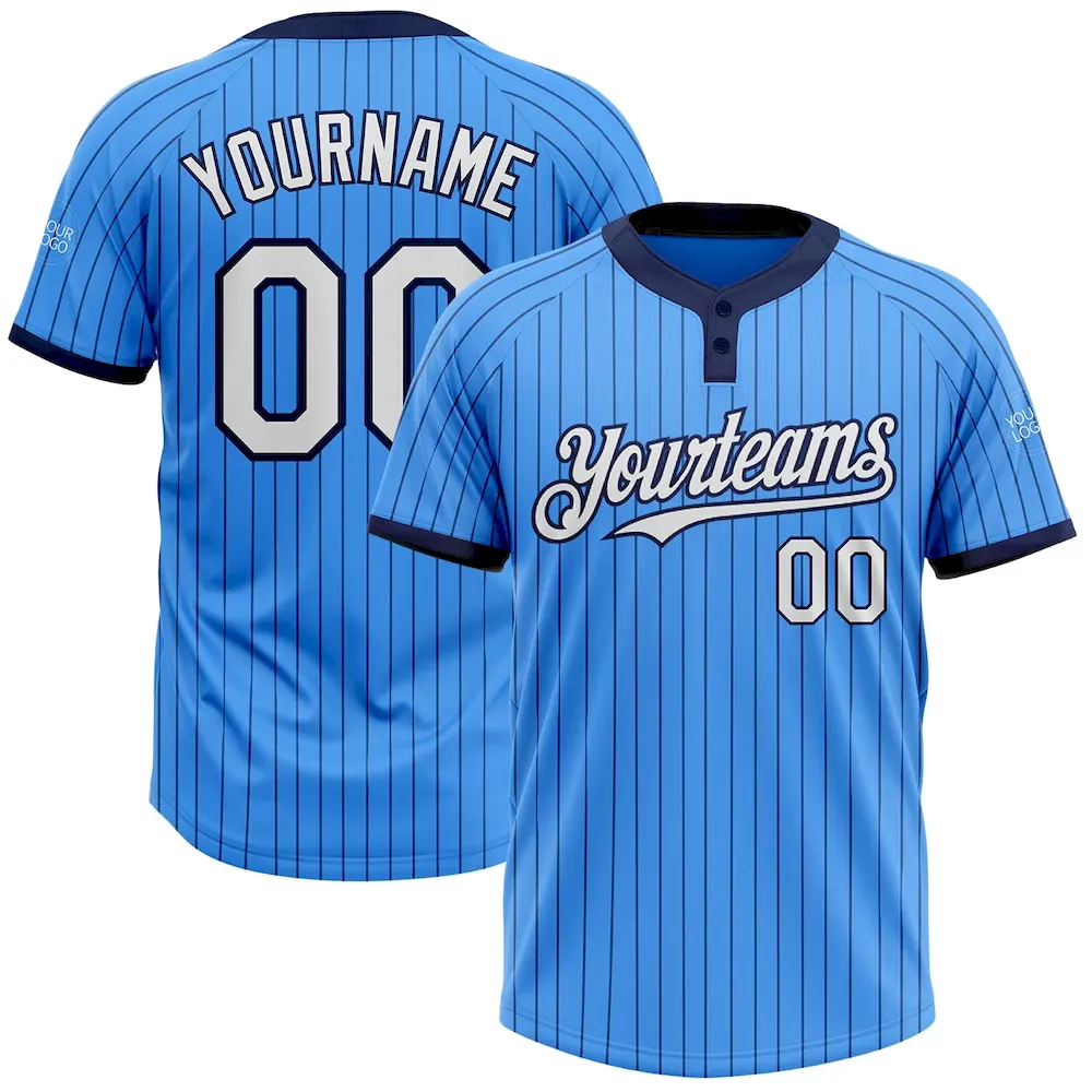 Custom Electric Blue Navy Pinstripe White Two-Button Unisex Softball Jersey