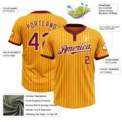 Custom Gold Crimson Pinstripe White Two-Button Unisex Softball Jersey