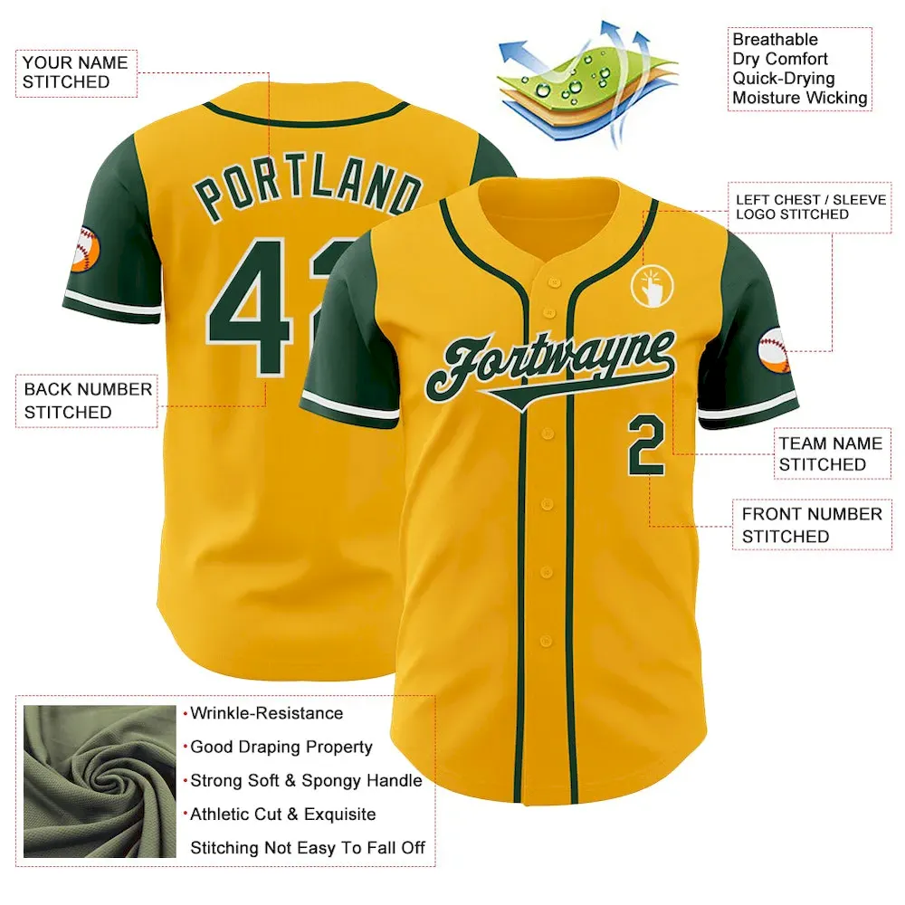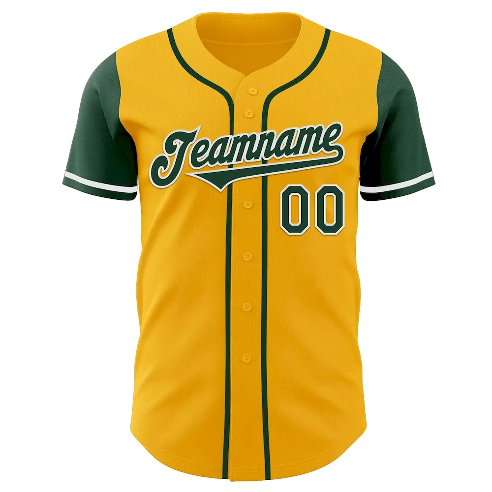 Custom Gold Green-White Authentic Two Tone Baseball Jersey