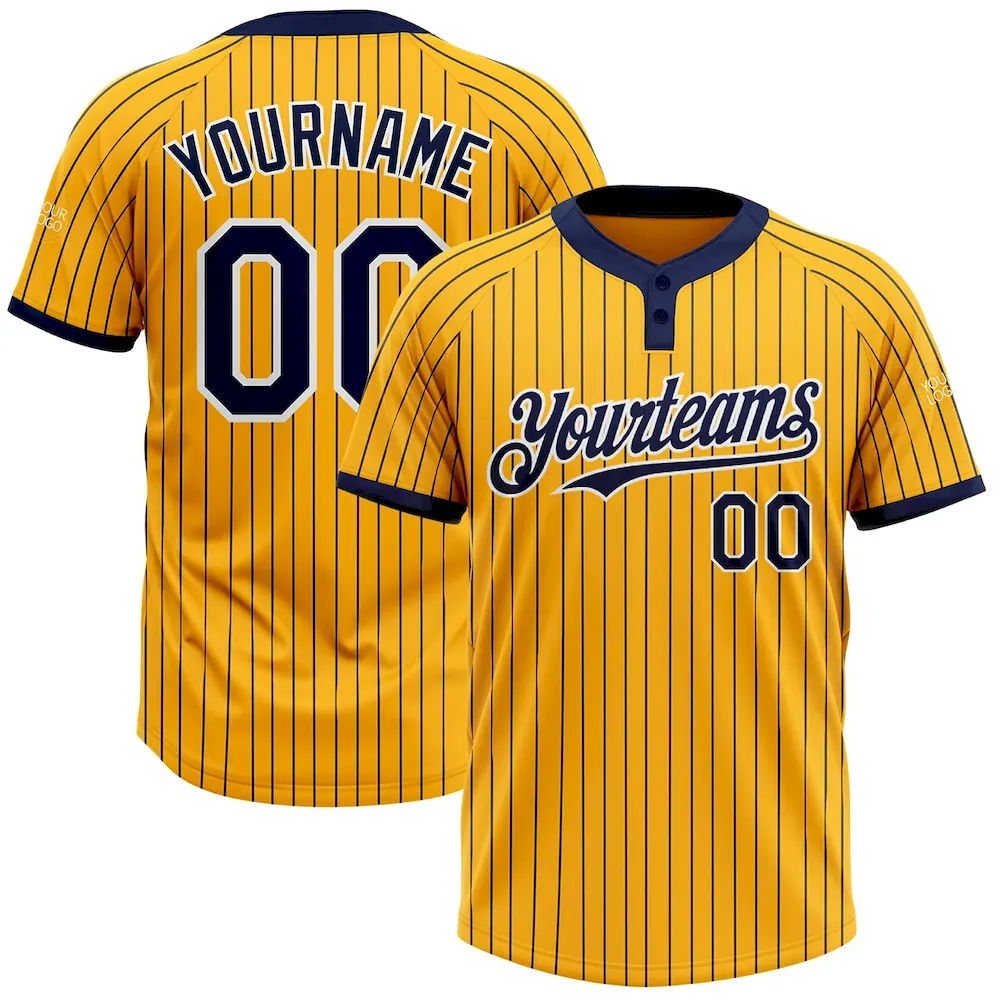 Custom Gold Navy Pinstripe White Two-Button Unisex Softball Jersey