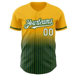 Custom Gold Pinstripe White-Green Authentic Fade Fashion Baseball Jersey