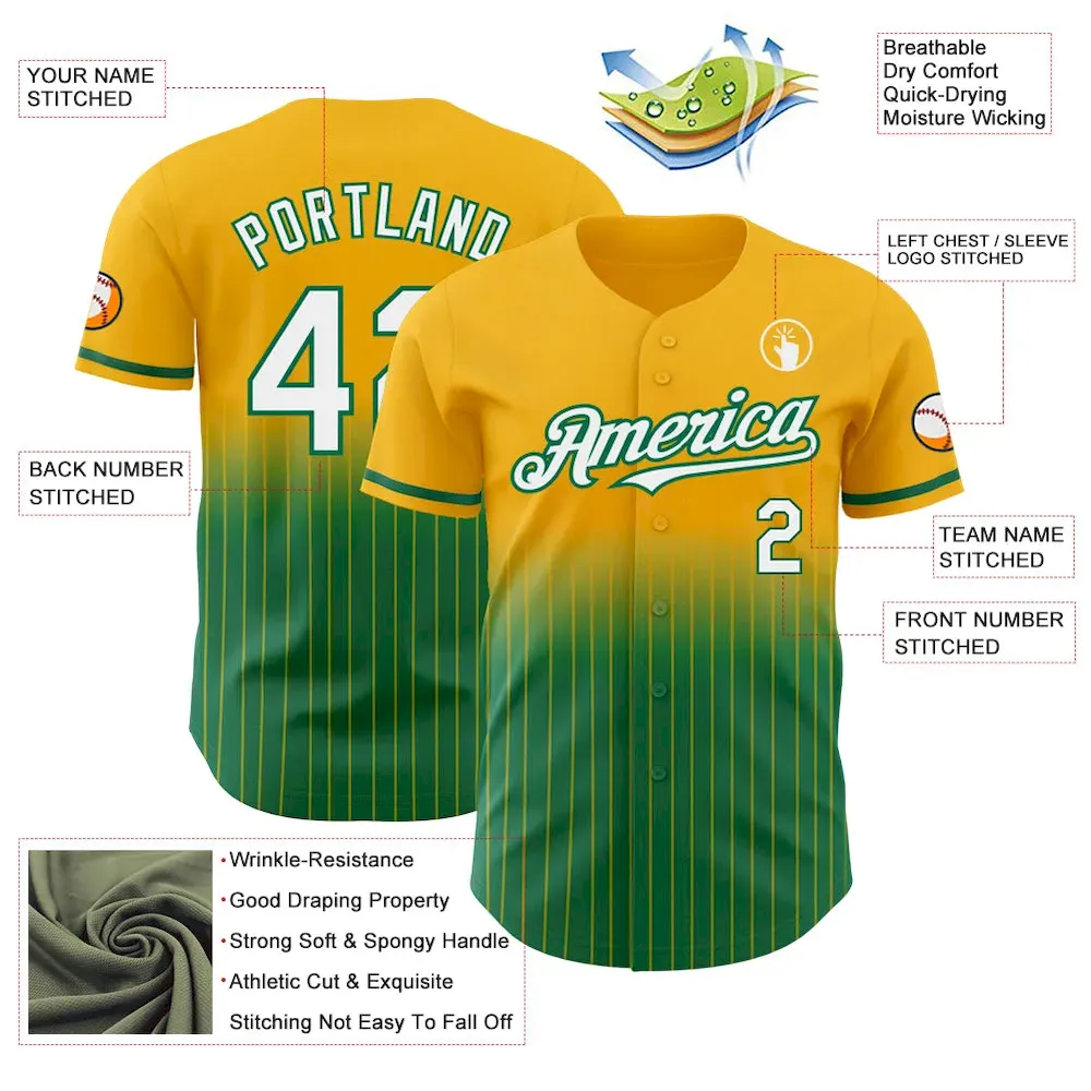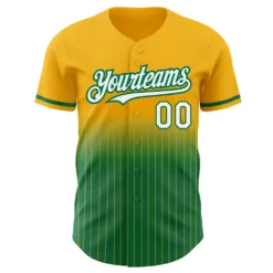 Custom Gold Pinstripe White-Kelly Green Authentic Fade Fashion Baseball Jersey
