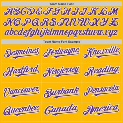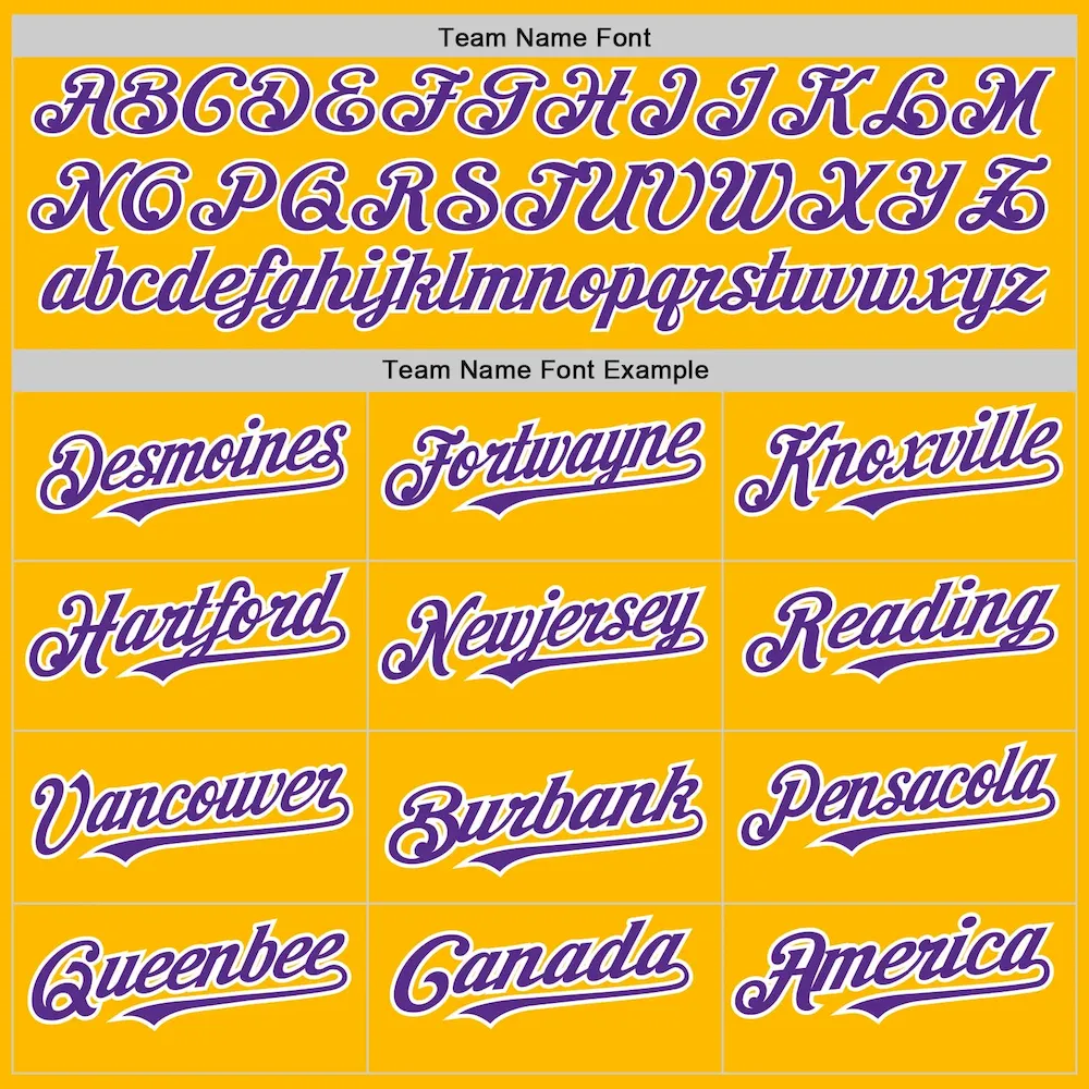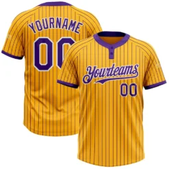 Custom Gold Purple Pinstripe White Two-Button Unisex Softball Jersey