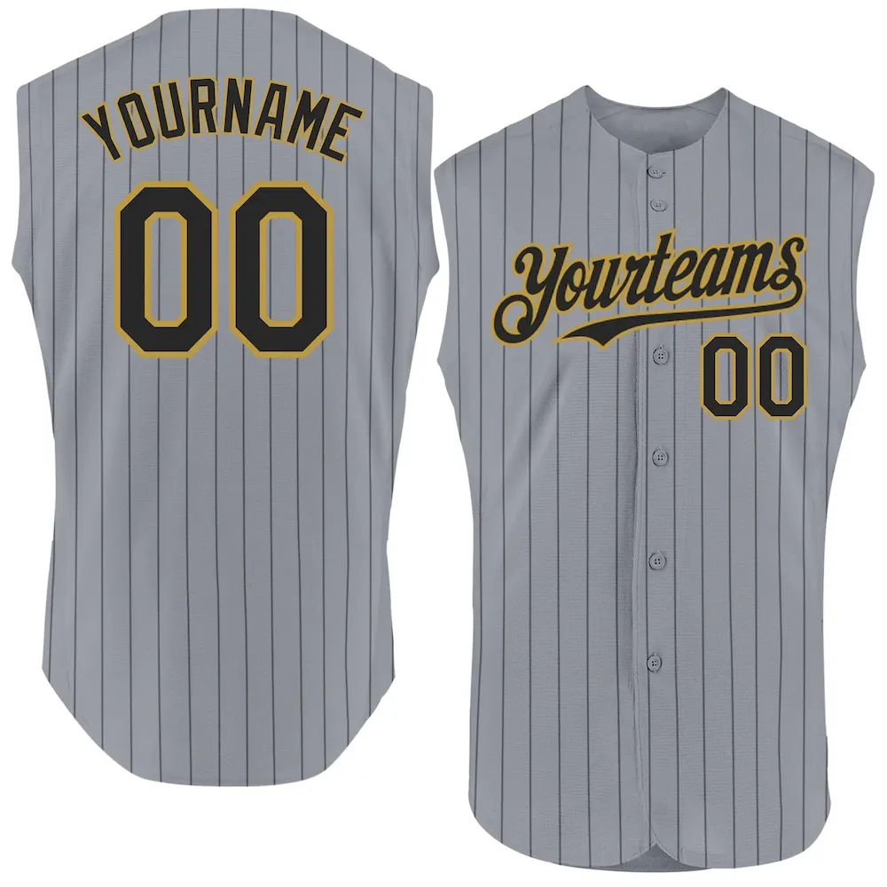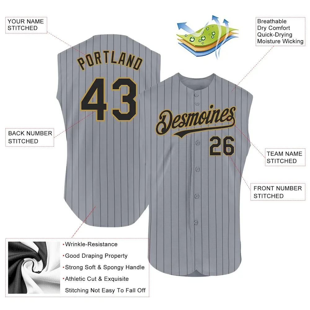 Custom Gray Black Pinstripe Old Gold Authentic Sleeveless Baseball Jersey