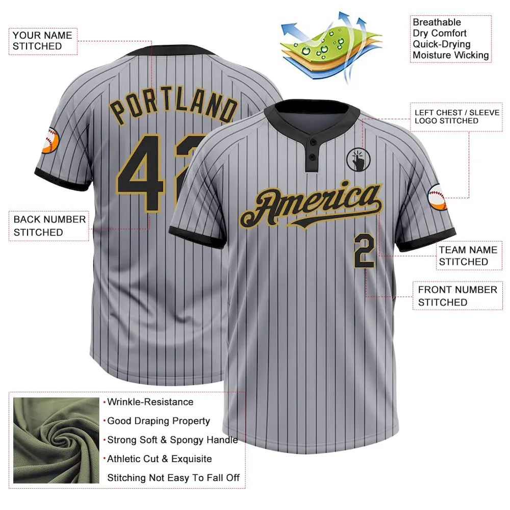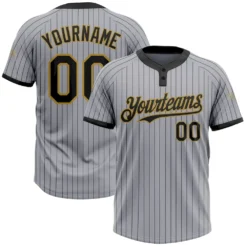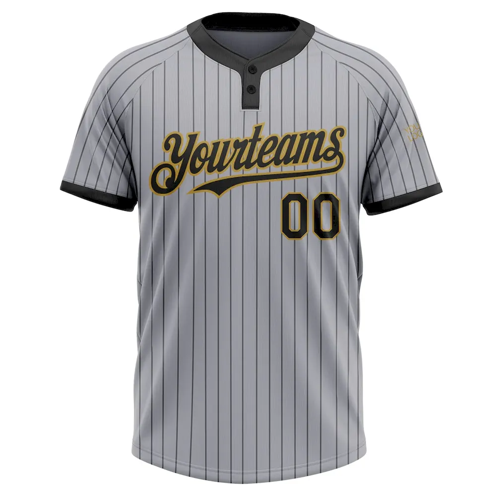 Custom Gray Black Pinstripe Old Gold Two-Button Unisex Softball Jersey