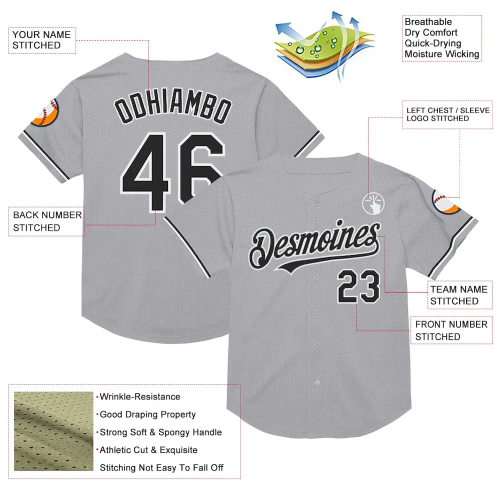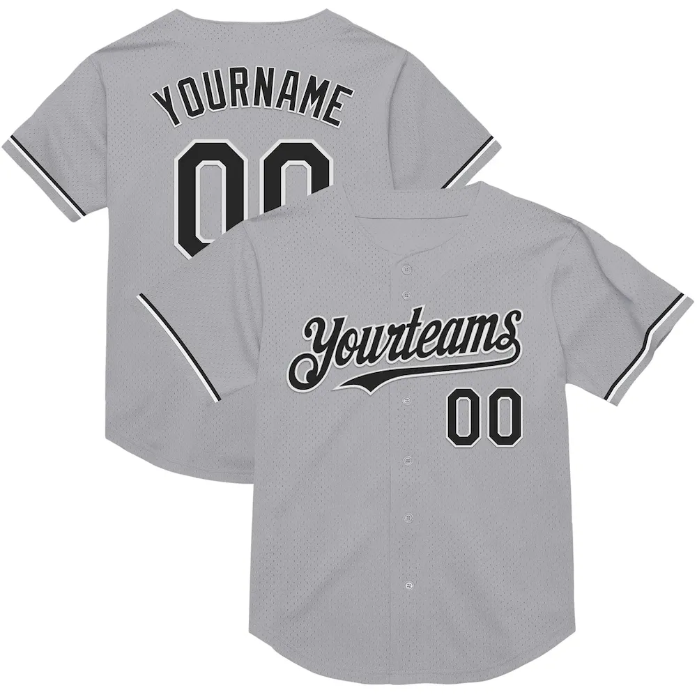 Custom Gray Black-White Mesh Authentic Throwback Baseball Jersey