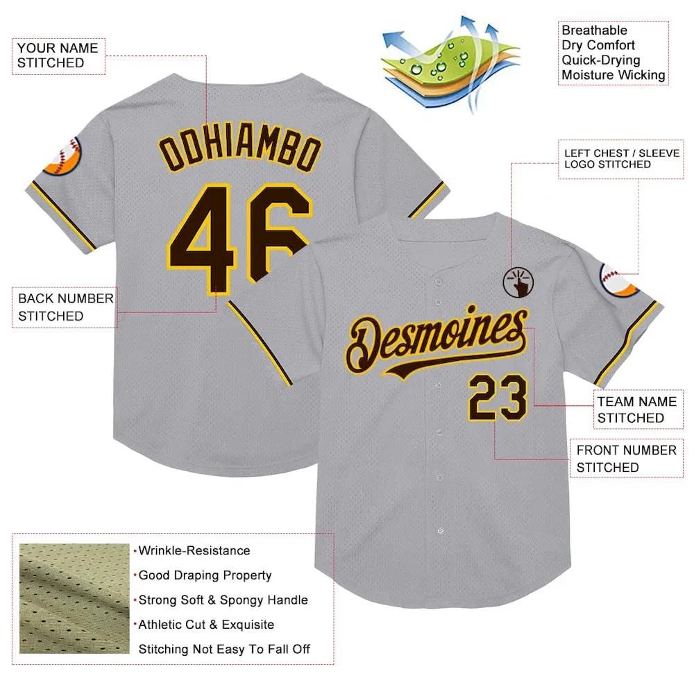 Custom Gray Brown-Yellow Mesh Authentic Throwback Baseball Jersey