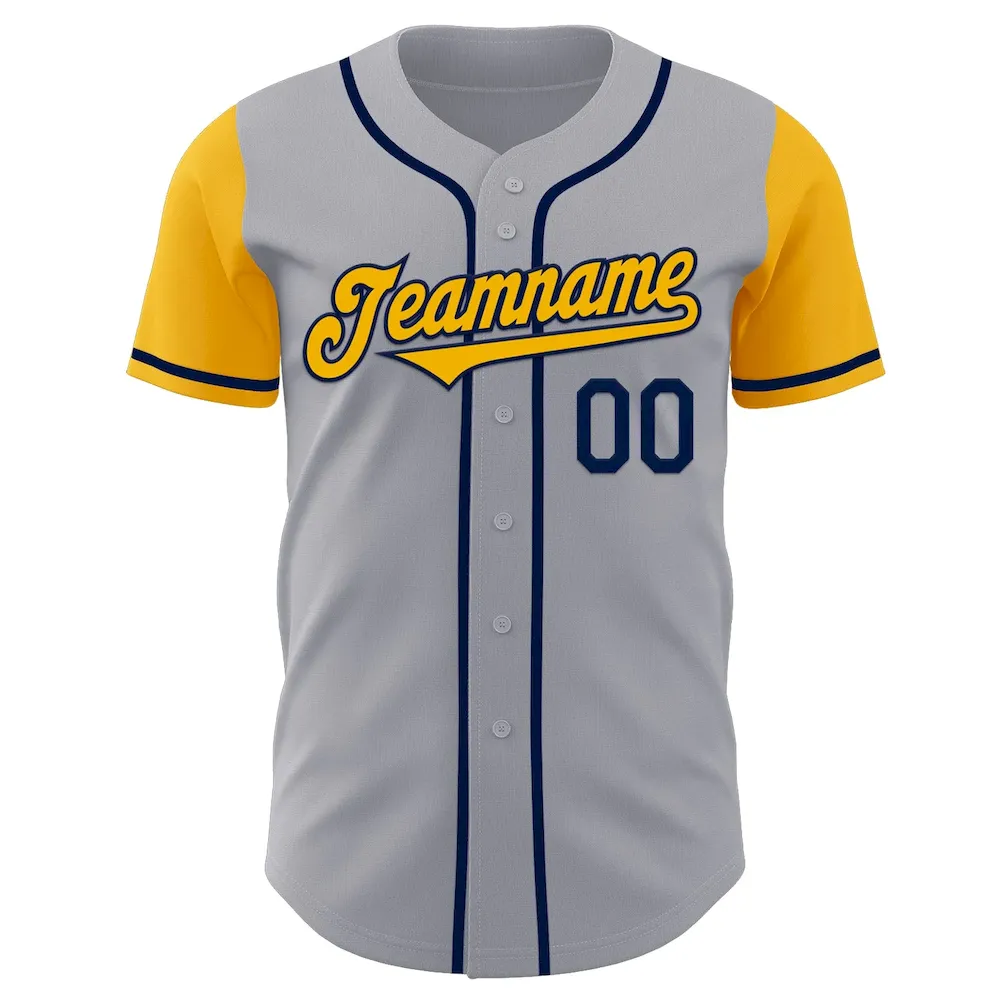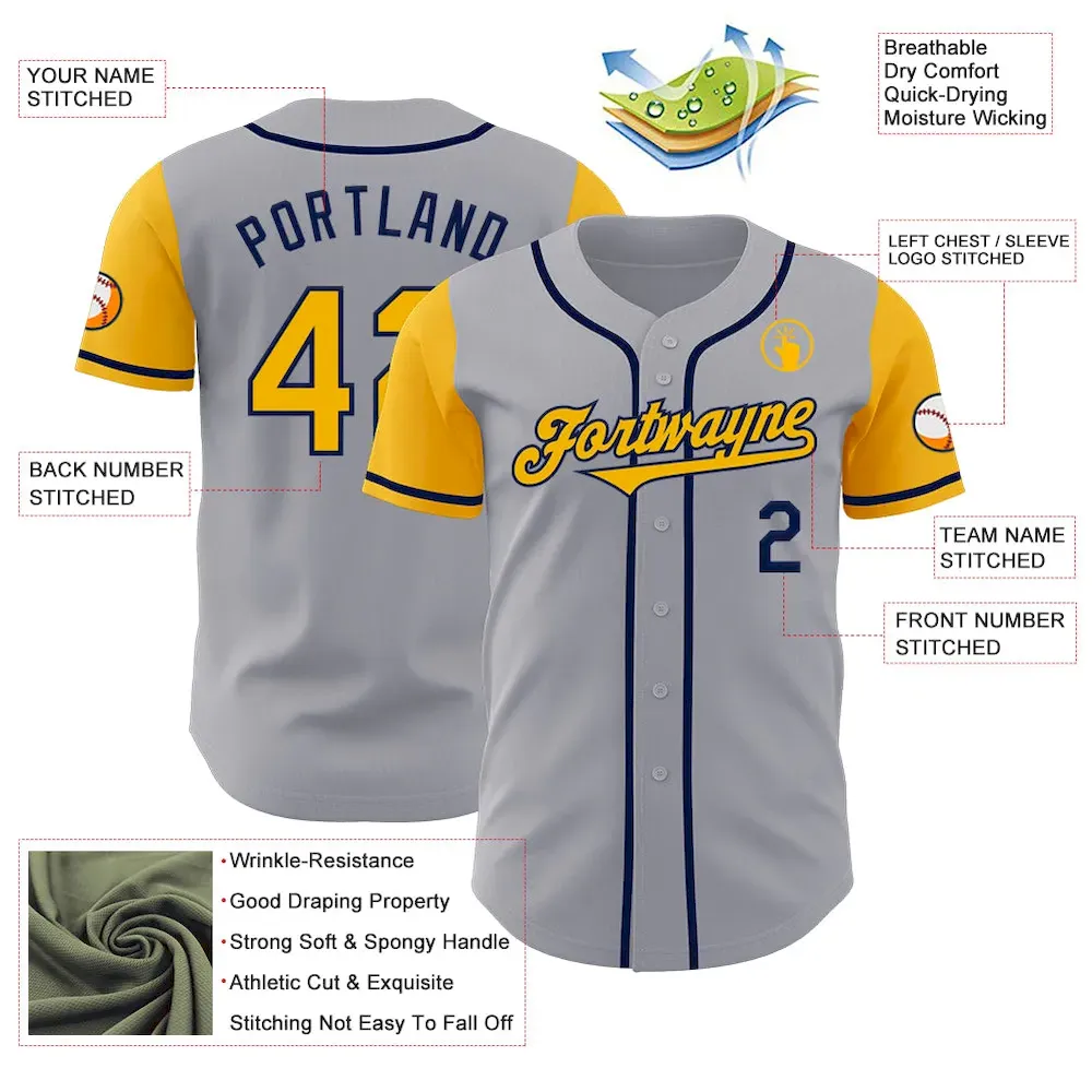 Custom Gray Gold-Navy Authentic Two Tone Baseball Jersey