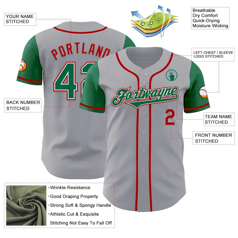 Custom Gray Kelly Green-Red Authentic Two Tone Baseball Jersey