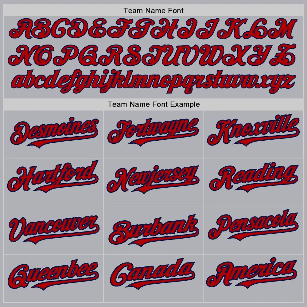 Custom Gray Navy Pinstripe Red Two-Button Unisex Softball Jersey