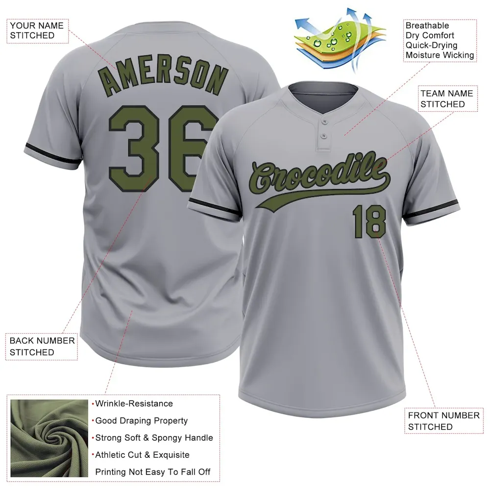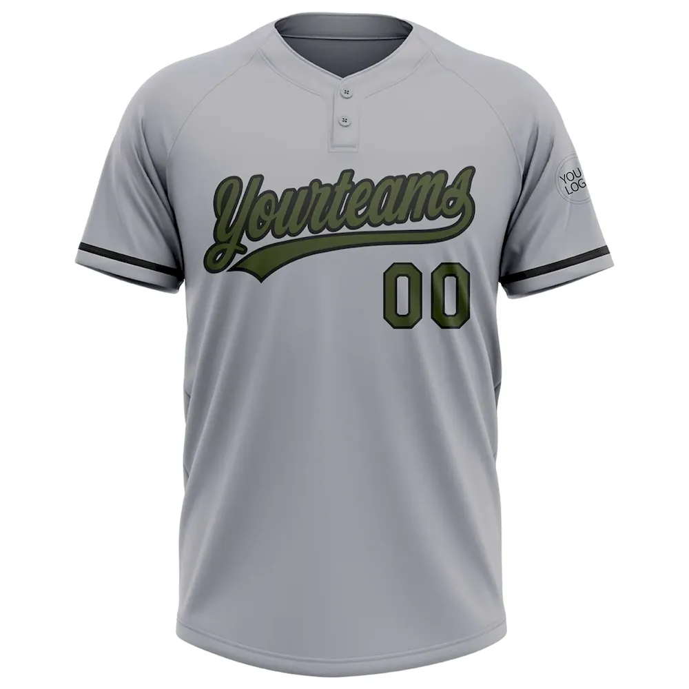 Custom Gray Olive-Black Two-Button Unisex Softball Jersey