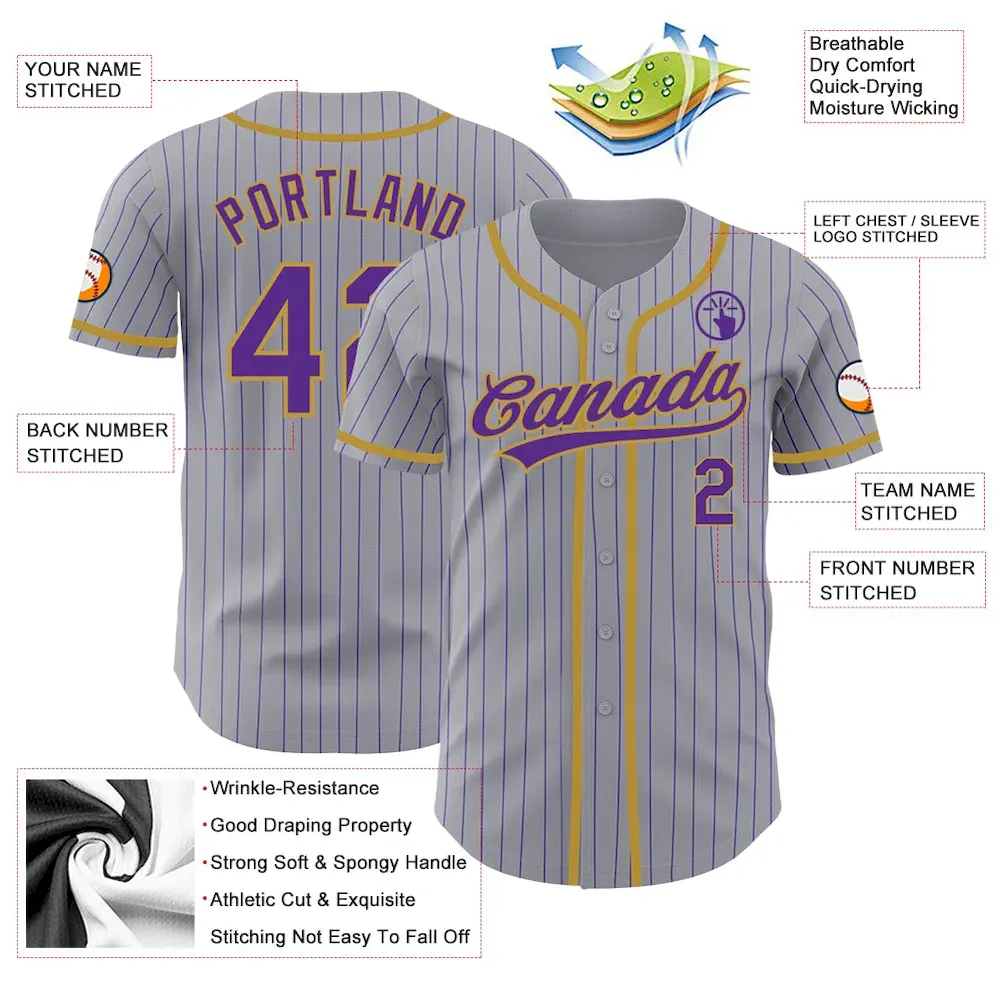 Custom Gray Purple Pinstripe Old Gold Authentic Baseball Jersey