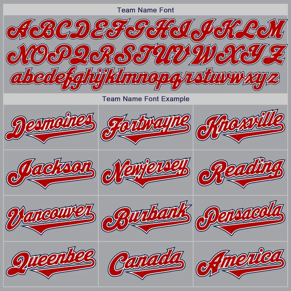 Custom Gray Red-Navy Authentic Two Tone Baseball Jersey
