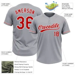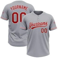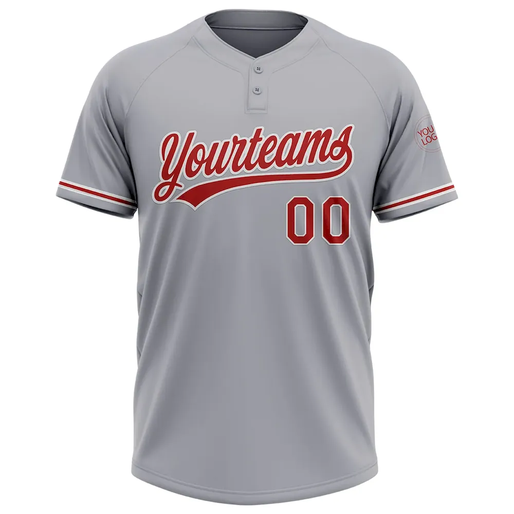 Custom Gray Red-White Two-Button Unisex Softball Jersey