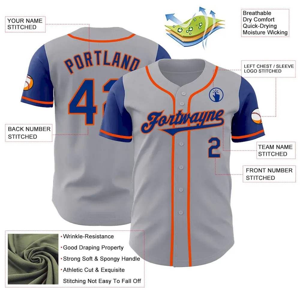 Custom Gray Royal-Orange Authentic Two Tone Baseball Jersey