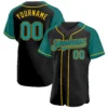 Custom Gray Teal-Black Authentic Raglan Sleeves Baseball Jersey