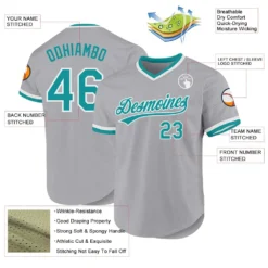 Custom Gray Teal-White Authentic Throwback Baseball Jersey