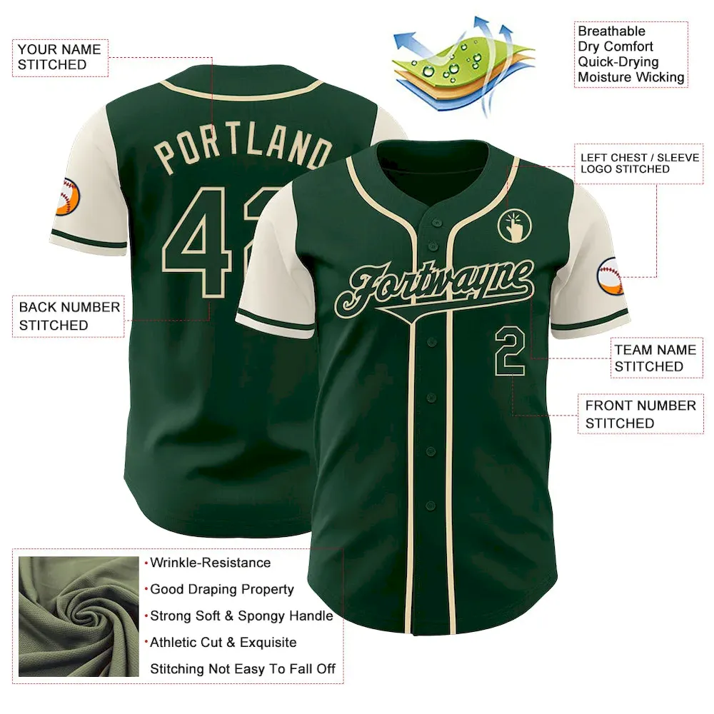 Custom Green Cream Authentic Two Tone Baseball Jersey