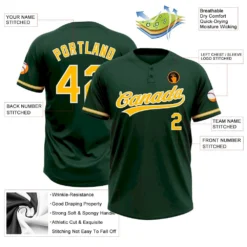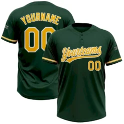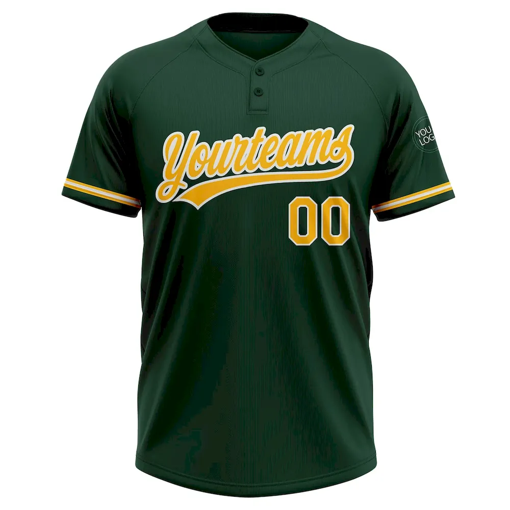 Custom Green Gold-White Two-Button Unisex Softball Jersey
