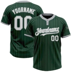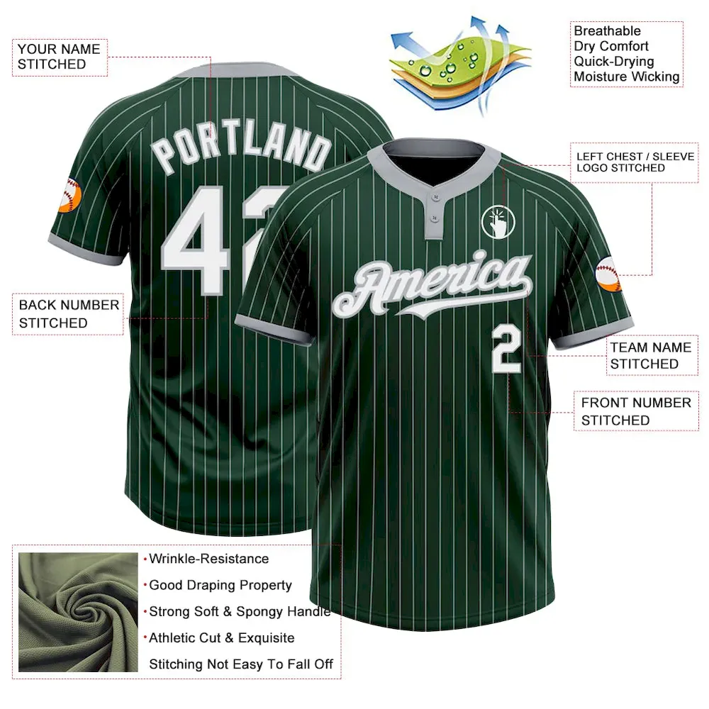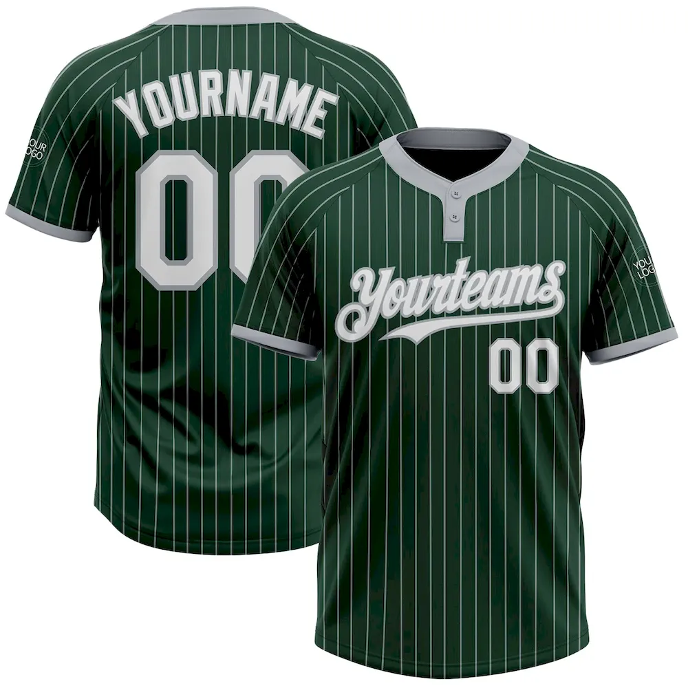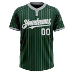Custom Green Gray Pinstripe White Two-Button Unisex Softball Jersey