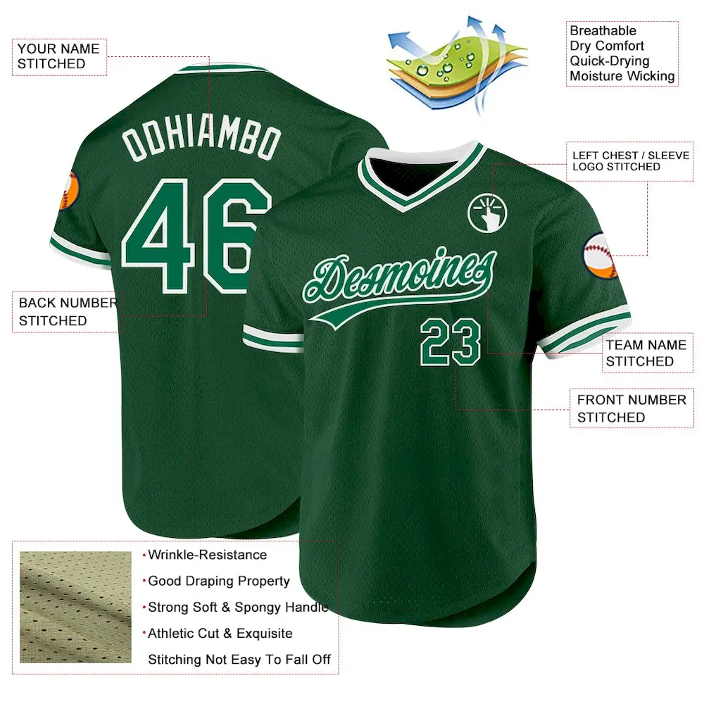 Custom Green Kelly Green-White Authentic Throwback Baseball Jersey