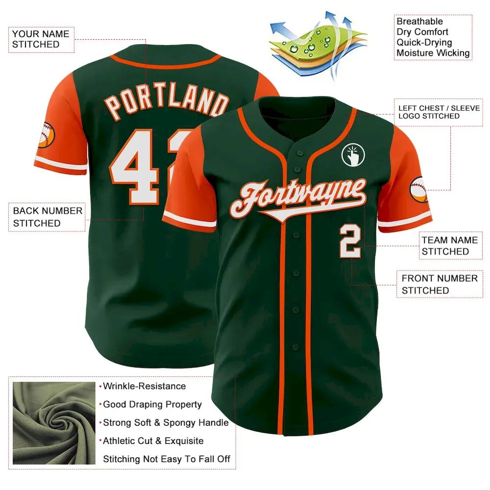 Custom Green White-Orange Authentic Two Tone Baseball Jersey
