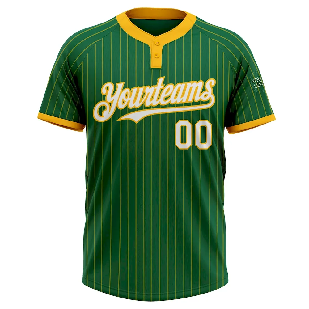 Custom Kelly Green Gold Pinstripe White Two-Button Unisex Softball Jersey