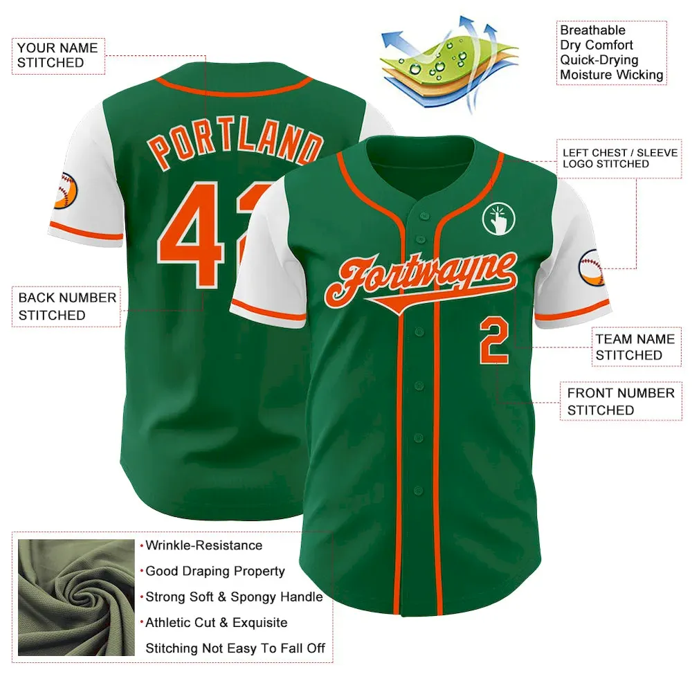 Custom Kelly Green Orange-White Authentic Two Tone Baseball Jersey
