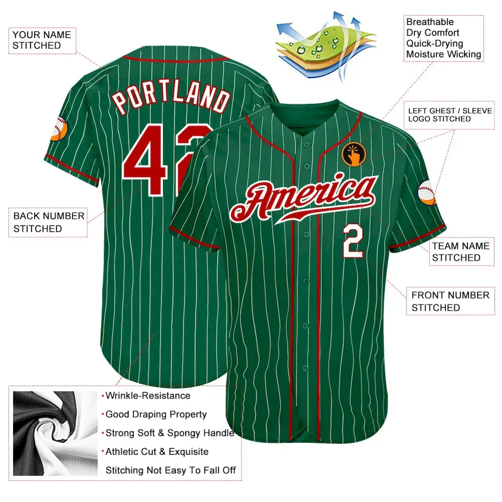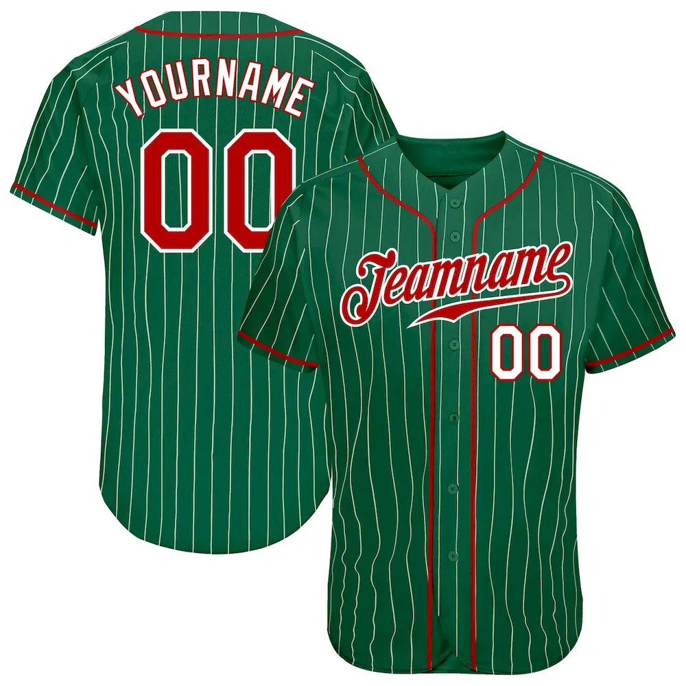 Custom Kelly Green White Pinstripe Red-White Authentic Baseball Jersey