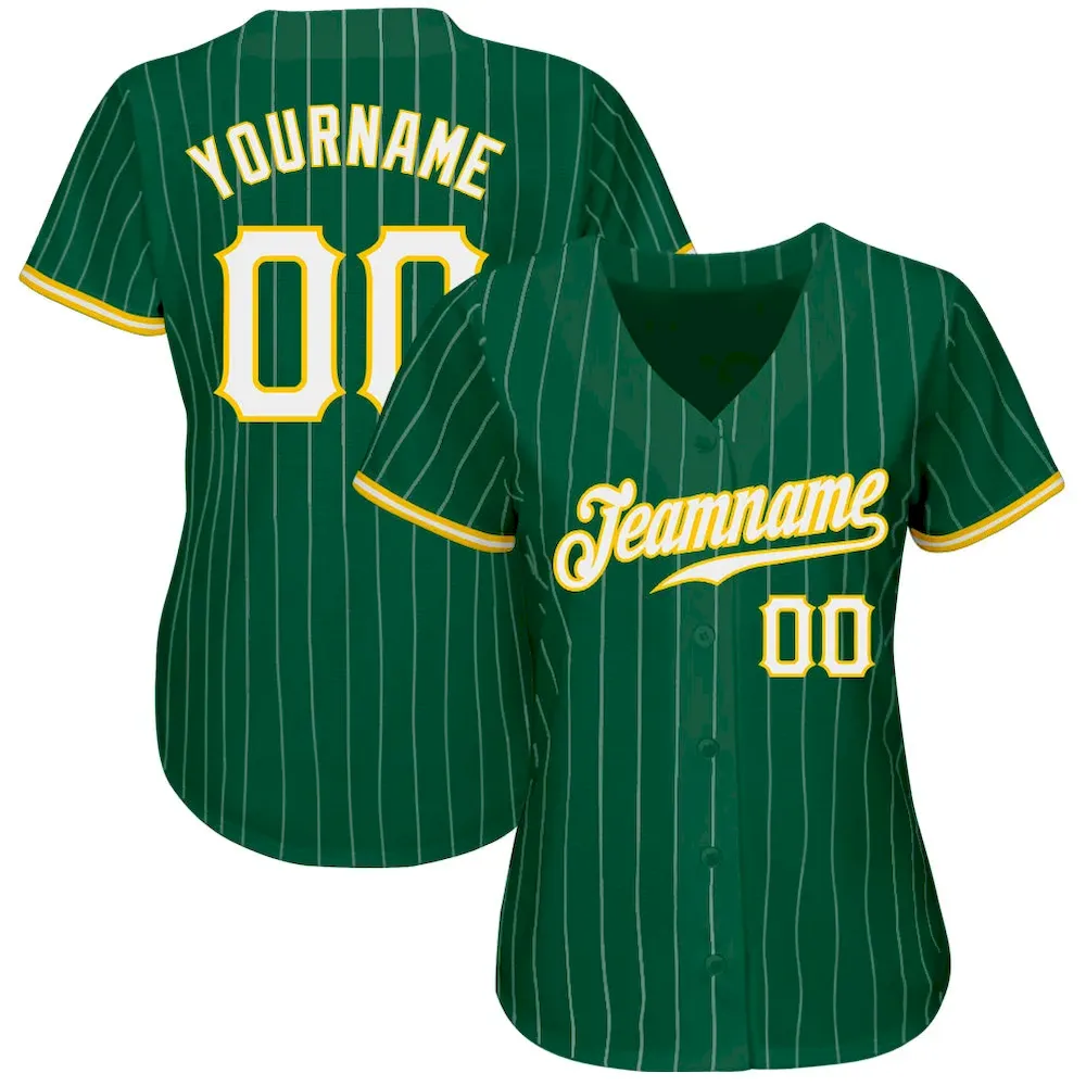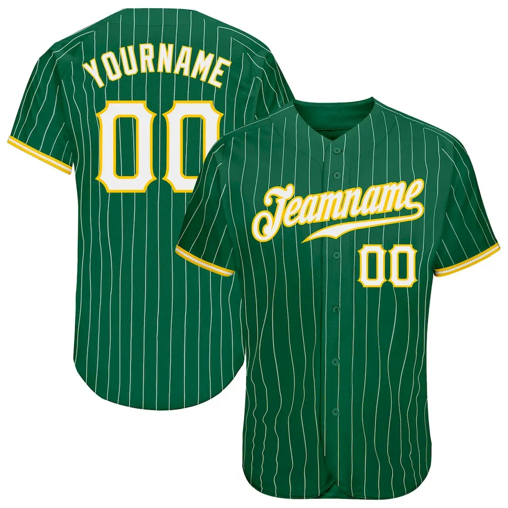 Custom Kelly Green White Pinstripe White-Gold Authentic Baseball Jersey
