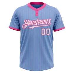 Custom Light Blue Pink Pinstripe White Two-Button Unisex Softball Jersey