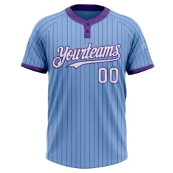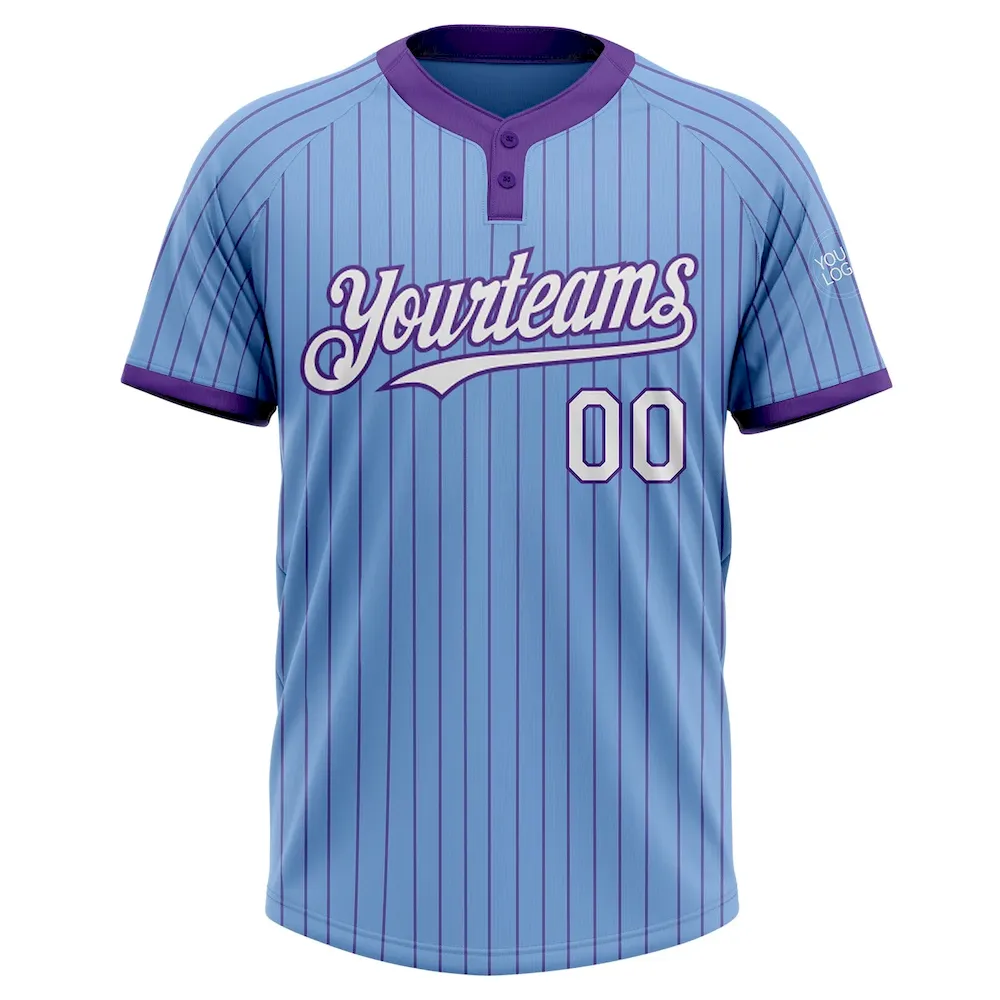 Custom Light Blue Purple Pinstripe White Two-Button Unisex Softball Jersey