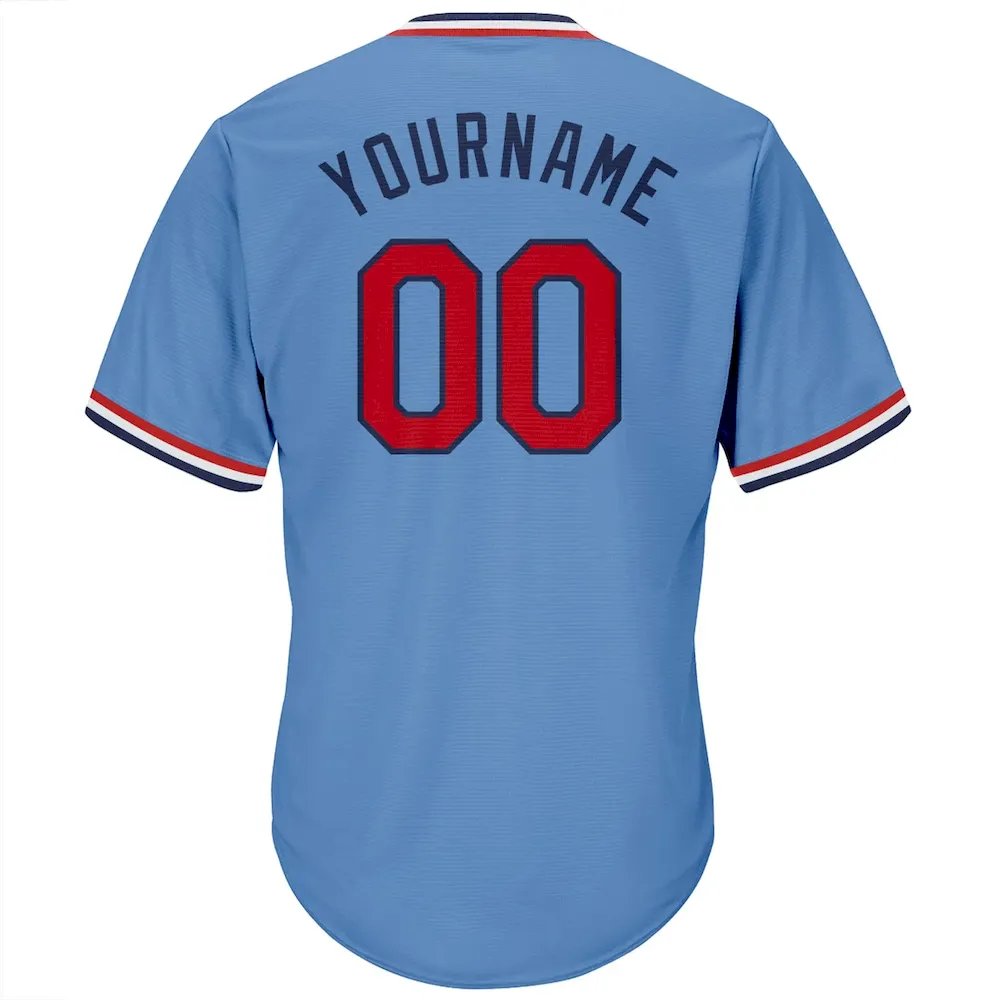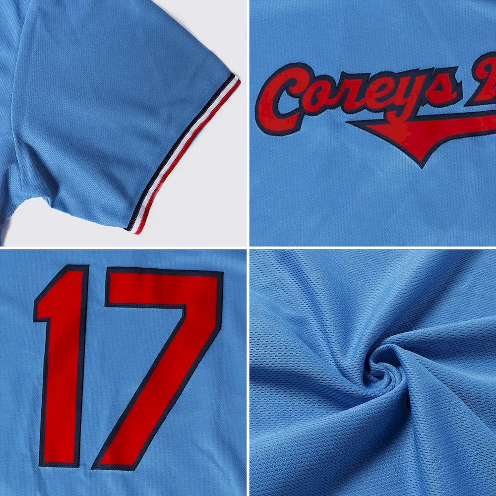 Custom Light Blue Red-Navy Authentic Throwback Rib-Knit Baseball Jersey Shirt