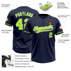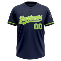 Custom Navy Neon Green-White Two-Button Unisex Softball Jersey