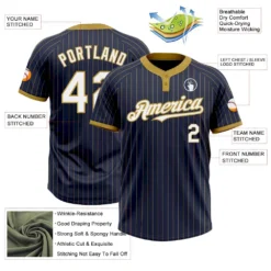 Custom Navy Old Gold Pinstripe White Two-Button Unisex Softball Jersey
