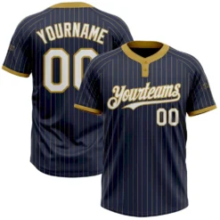 Custom Navy Old Gold Pinstripe White Two-Button Unisex Softball Jersey