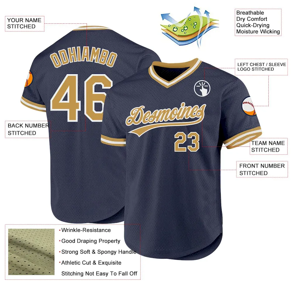 Custom Navy Old Gold-White Authentic Throwback Baseball Jersey