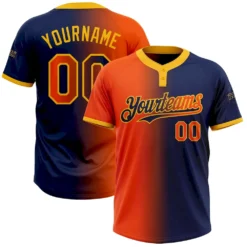 Custom Navy Orange-Gold Gradient Fashion Two-Button Unisex Softball Jersey
