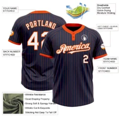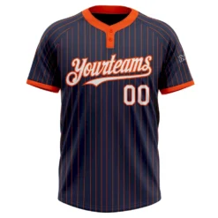 Custom Navy Orange Pinstripe White Two-Button Unisex Softball Jersey