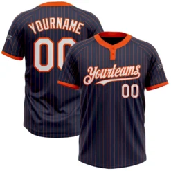 Custom Navy Orange Pinstripe White Two-Button Unisex Softball Jersey
