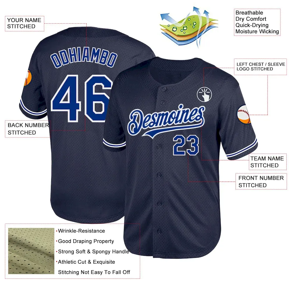 Custom Navy Royal-White Mesh Authentic Throwback Baseball Jersey