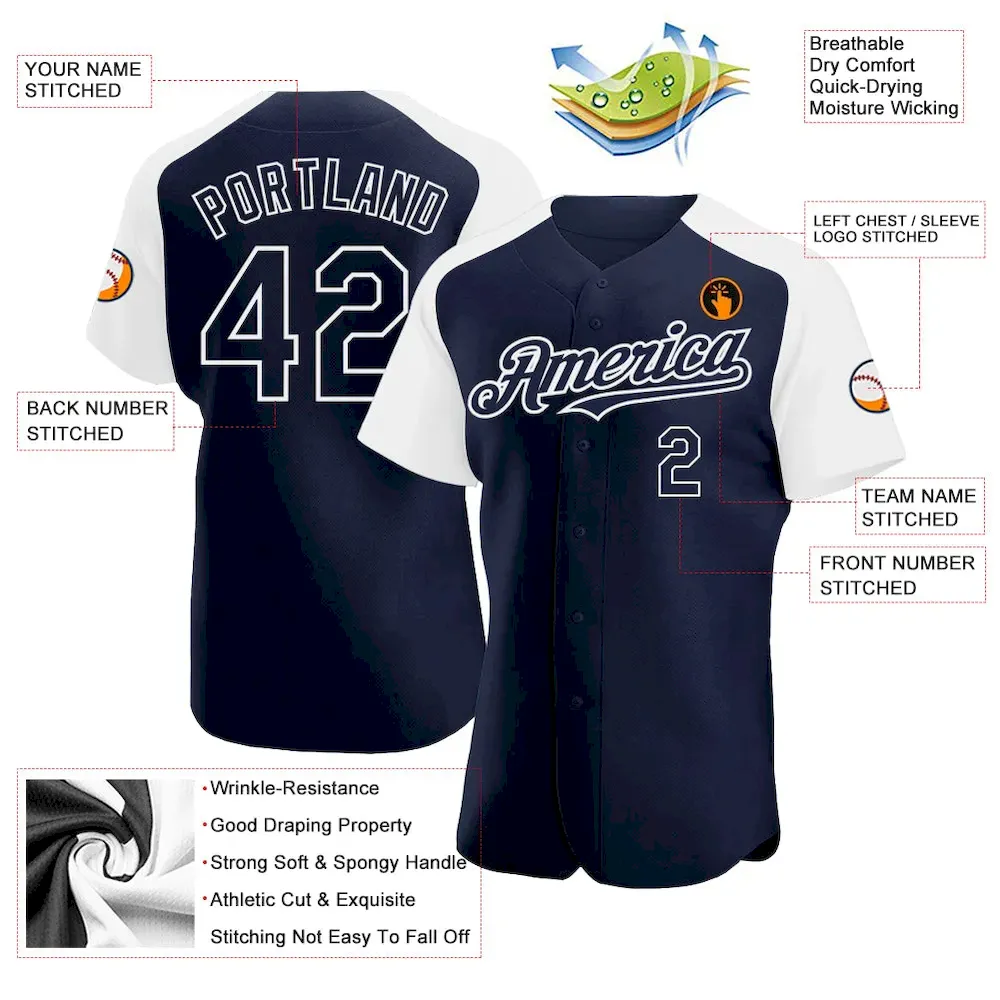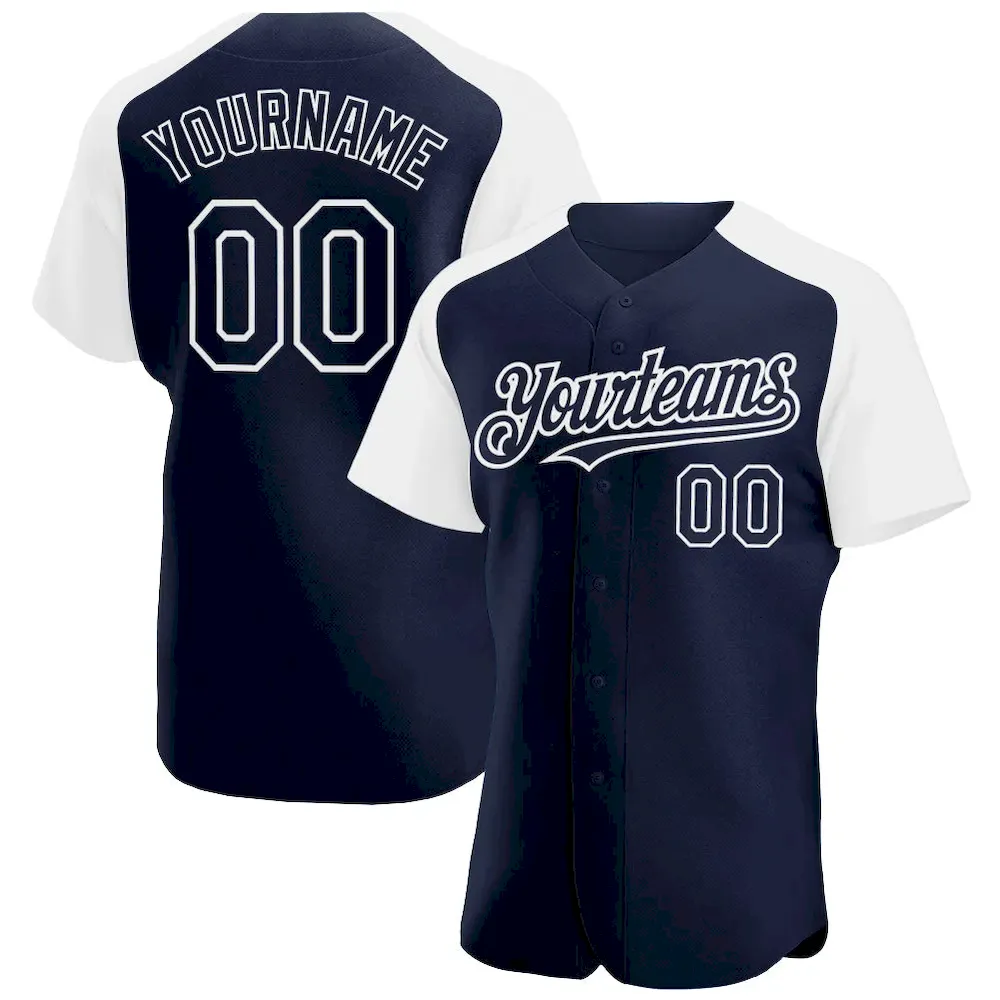 Custom Navy White Authentic Raglan Sleeves Baseball Jersey