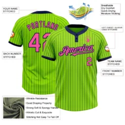 Custom Neon Green Navy Pinstripe Pink Two-Button Unisex Softball Jersey