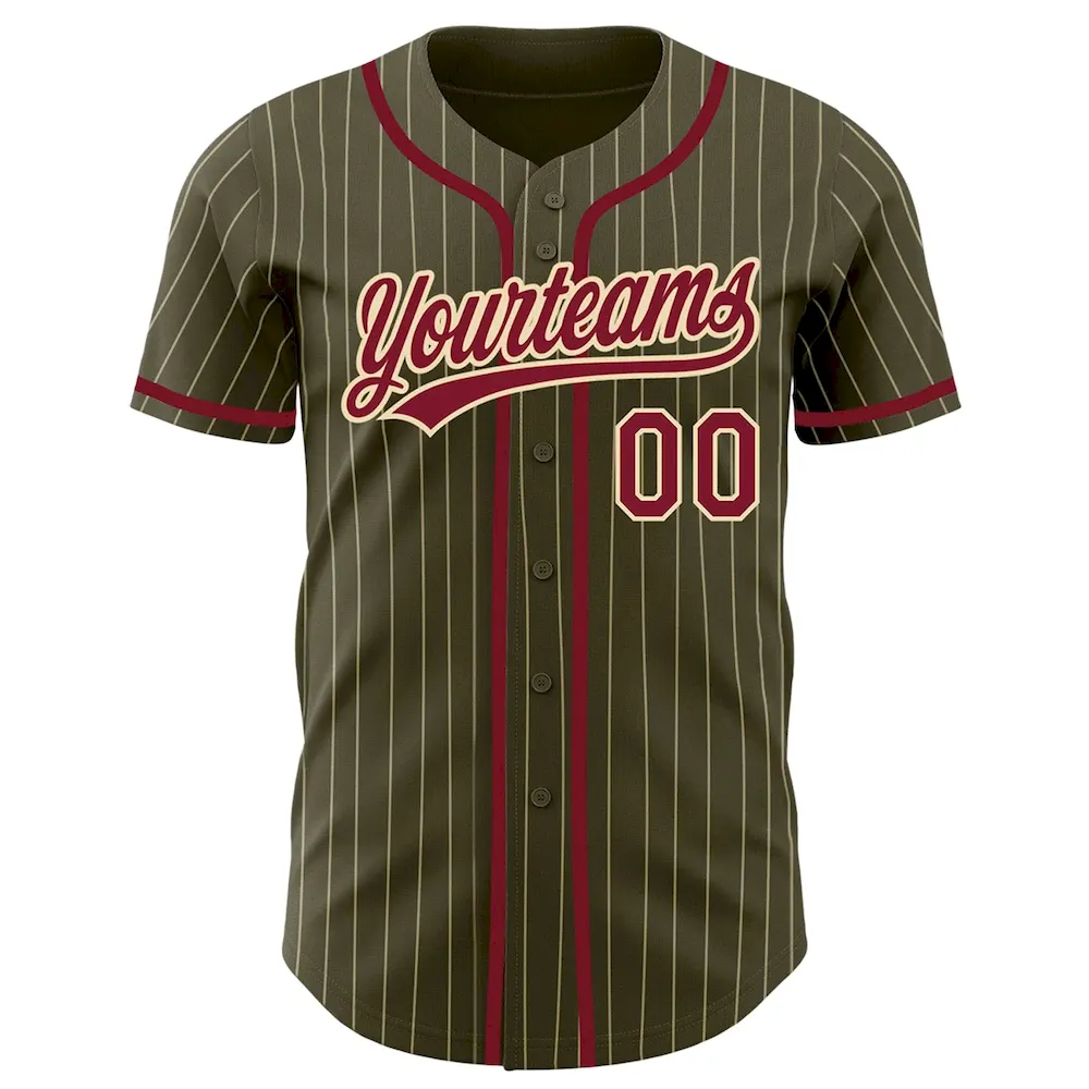 Custom Olive City Cream Pinstripe Crimson Authentic Salute To Service Baseball Jersey