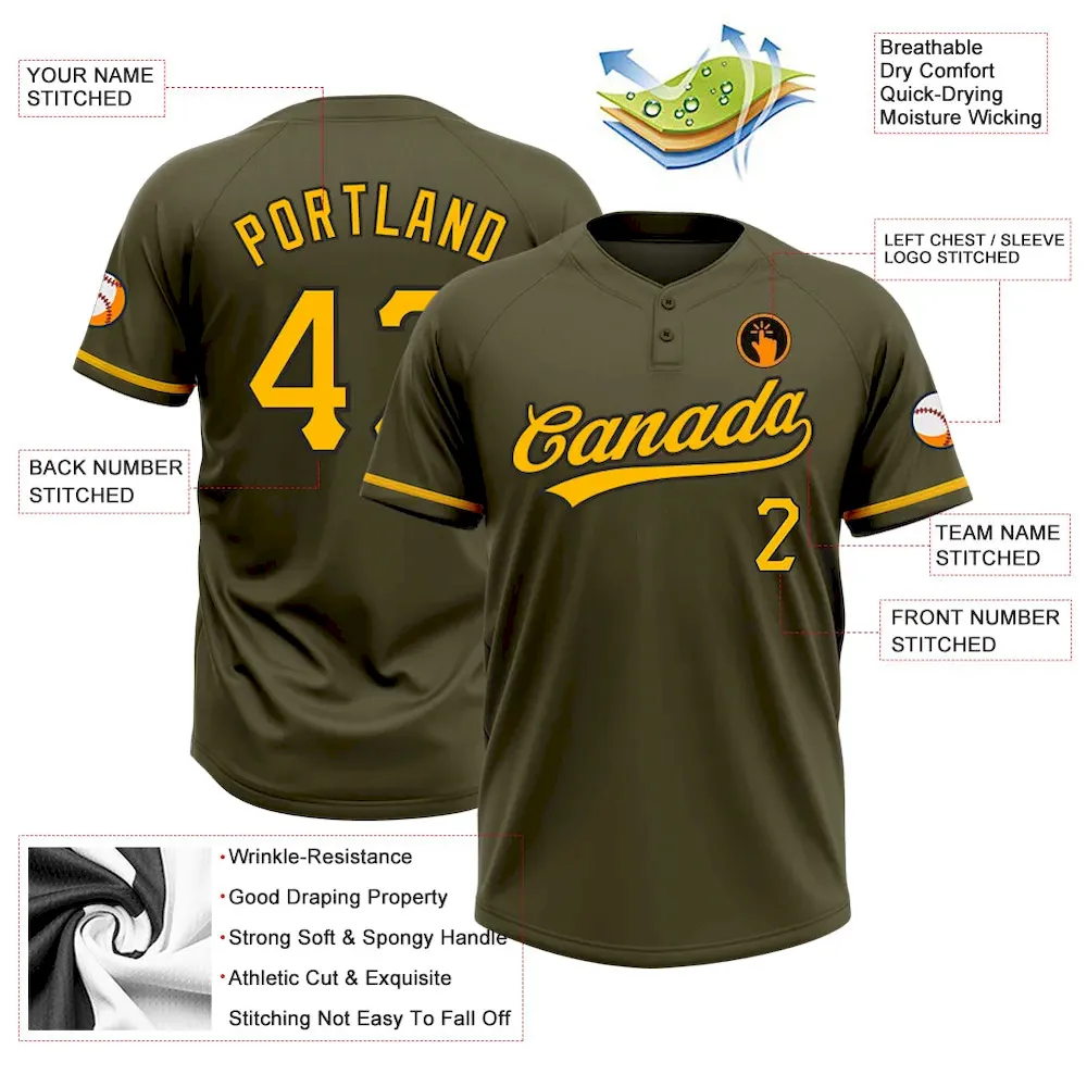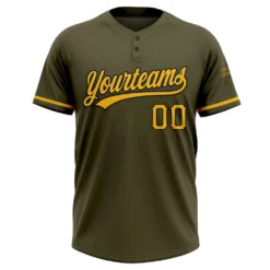 Custom Olive Gold-Black Salute To Service Two-Button Unisex Softball Jersey